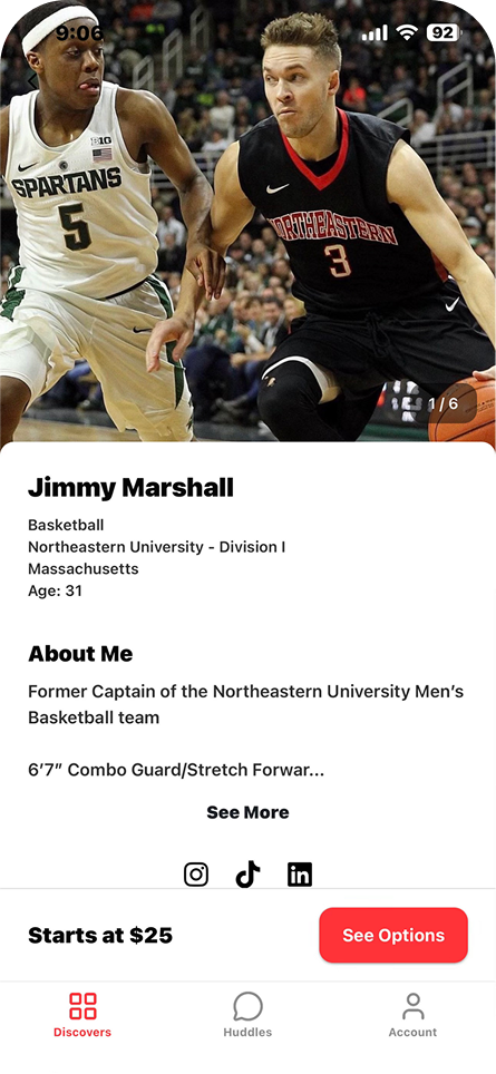 Find verified college and pro athletes who’ve played your sport and position. See their story, background, and expertise — so you can connect with someone who truly understands your path.