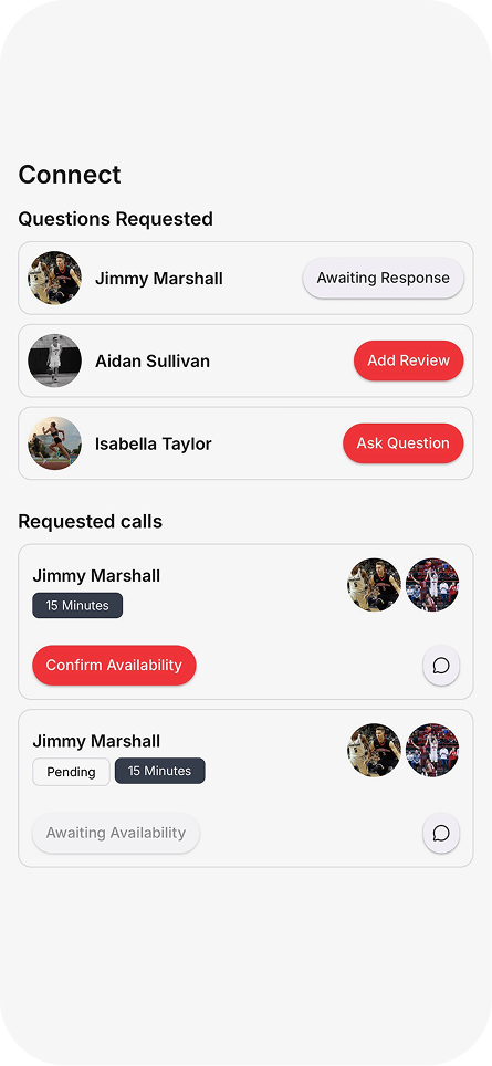 The Connect tab in the app shows all your booked calls, ongoing conversations, and completed interactions, making it easy to stay on top of your mentorship.